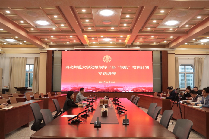 11月20日下午,西北师大举办第一期处级领导干部“领航”培训计划第六场专题报告会。副校长马世年、马利邦应邀作专题讲座,党委常委、党委组织部部长周琳辉主持报告会。学校处级领导干部“领航”培训计划全体学员,以及科学研究院、党委保卫部、国有资产管理处、就业与校友事务处、网信办全体干部参加学习。